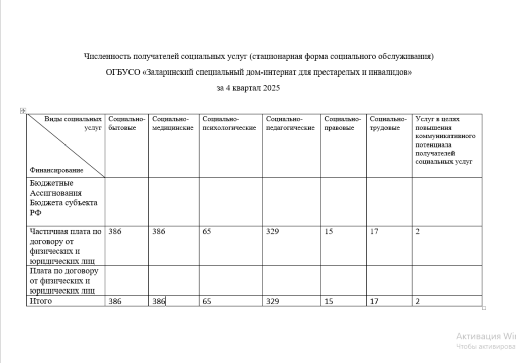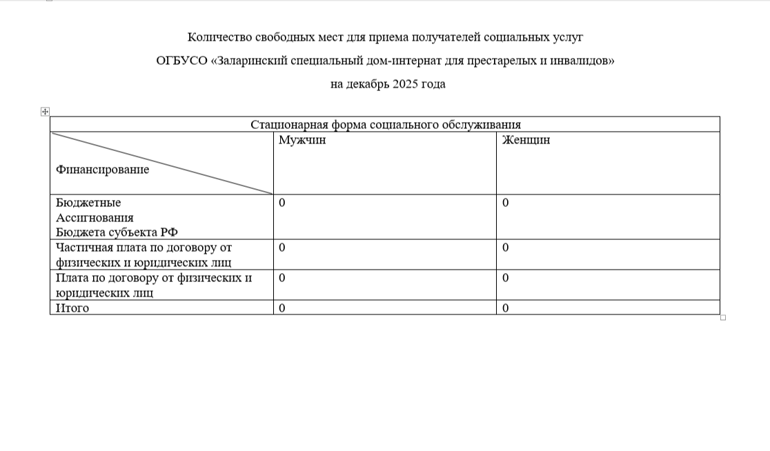 | 7 | о порядке и условиях предоставления социальных услуг бесплатно и за плату по видам социальных услуг и формам социального обслуживания с приложением образцов договора о предоставлении социальных услуг бесплатно и за плату | Порядок предоставления социальных услуг осуществляется на основании Приказа министерства социального развития, опеки и попечительства Иркутской области от 11.12.2014 г. № 193-мпр «Об утверждении порядка предоставления социальных услуг в стационарной форме социального обслуживания». Социальные услуги предоставляются гражданам, которые в установленном порядке признаны нуждающимися в социальном обслуживании, в соответствии с индивидуальной программой предоставления социальных услуг на основании договора о предоставлении социальных услуг, заключаемого между поставщиком социальных услуг и получателем социальных услуг или его законным представителем. Социальные услуги в ОГБУСО «Заларинский специальный дом-интернат для престарелых и инвалидов» предоставляются в стационарной форме гражданам пожилого возраста (женщинам старше 55 лет, мужчинам старше 60 лет), инвалидам, частично или полностью утратившим способности либо возможности осуществлять самообслуживание, самостоятельно передвигаться, обеспечивать основные жизненные потребности в силу заболевания, травмы, возраста или наличия инвалидности Плата за социальные услуги в стационарной форме составляет 75 % среднего душевого дохода гражданина (пенсия, ЕДВ, РСД и др. выплаты) Подробная информация о порядке и условиях предоставления социальных размещена в разделе Предоставление услуг – порядок и условия предоставления услуг в ОГБУСО «Заларинский специальный дом-интернат для престарелых и инвалидов» |